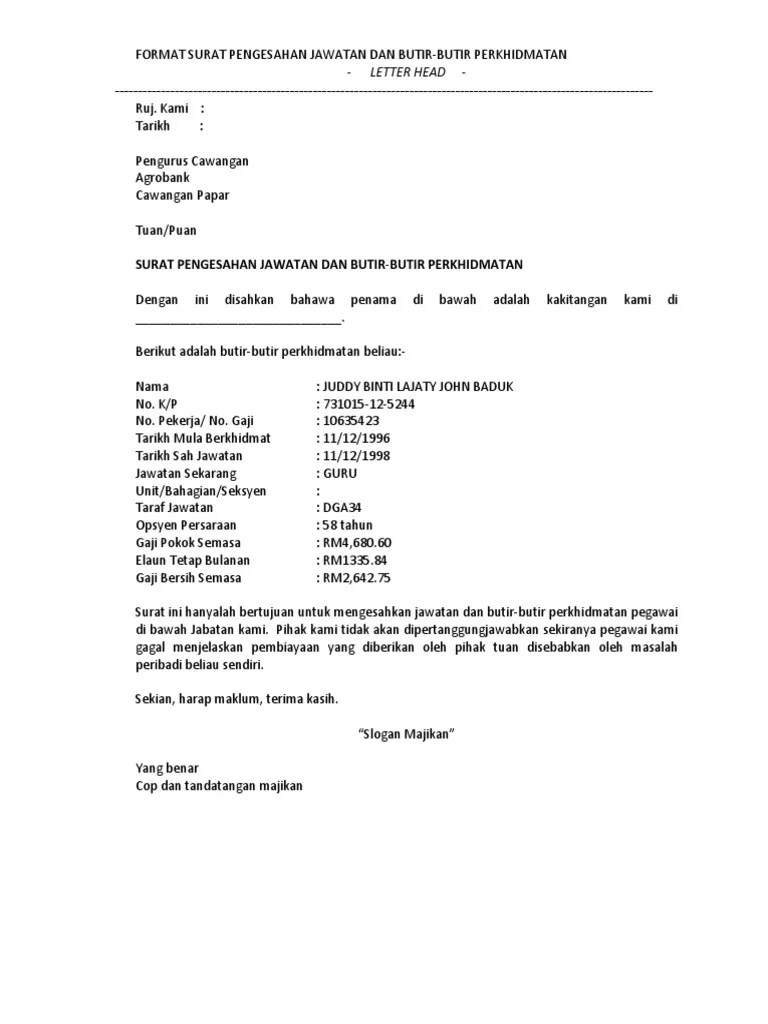 Surat Pengesahan Jawatan Dari Majikan Swasta Letter 7saudara Com